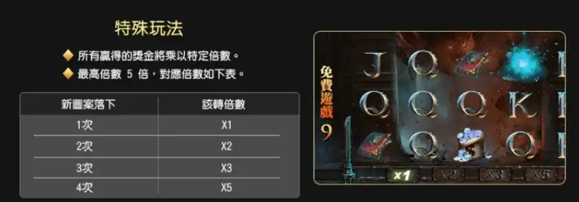 圖示掉落的過程中可以重複觸發消除,一次轉動中若是連續消除3次以上則可以達到最高5倍,此時所消除的圖示獎金通通乘以5倍,而這正是魔龍傳奇中能夠輕鬆爆大分的關鍵!